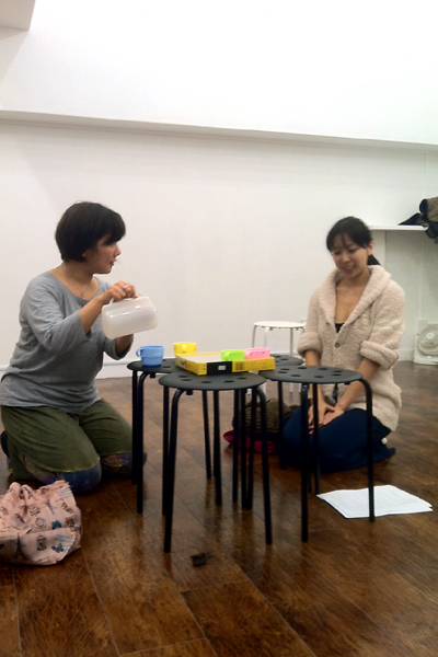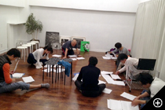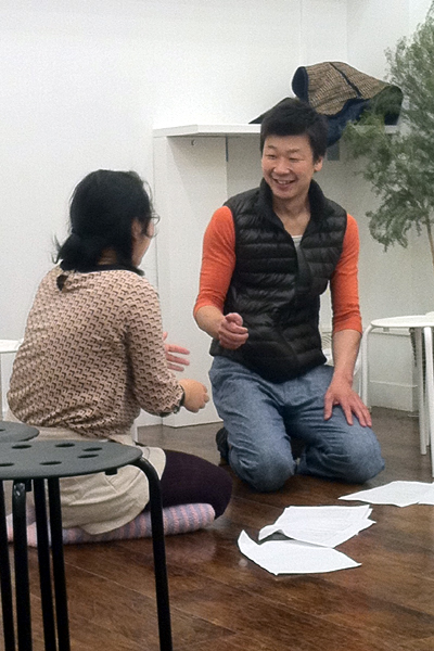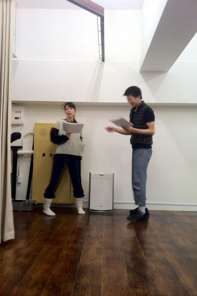 前日のお芝居を見ながら少しづつ手を加えて台本も変えていきます。早船さん、ありがとうございます!